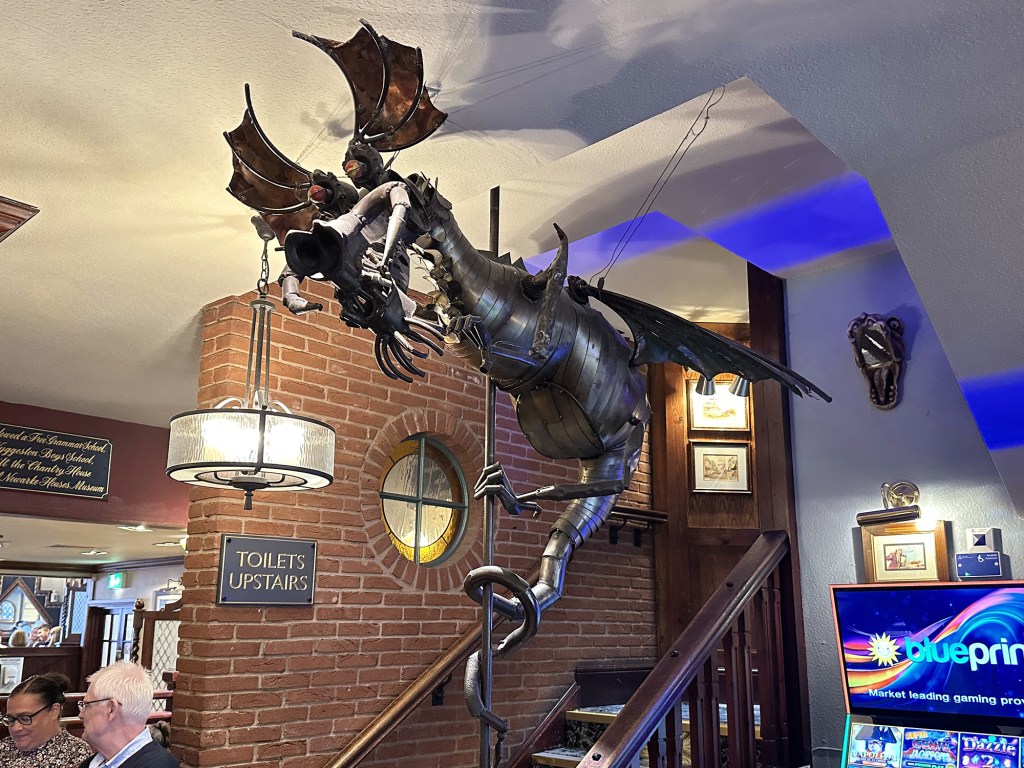 The staircase up to the toilets is decorated with a number of intriguing statuettes. Try as we might we couldn’t quite make the connection between these and the pub’s theming, but it’s certainly a nice touch that we appreciated.