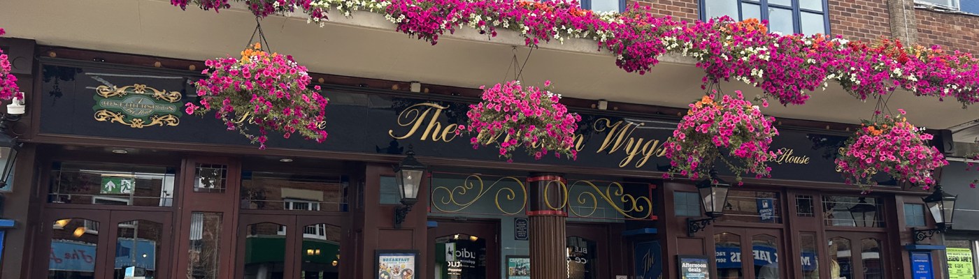 The building was originally built in the late 90s as a Kwik Save, and the pub is now a fairly inconspicuous building with quite a traditional look to it. The narrow frontage conceals how deep the pub is and the hanging flowers and plants tot he front of the pub are a welcoming touch on an otherwise conservative building.