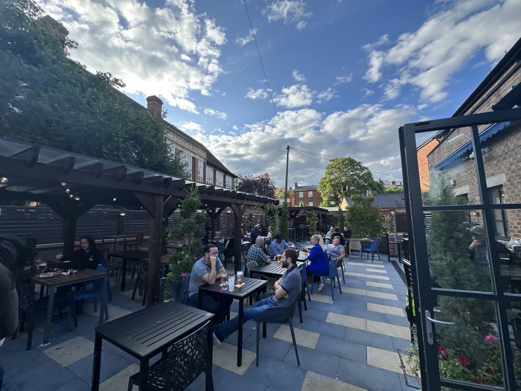 To the rear is the huge and newly-built beer garden, with a number of covered pergolas and plenty of outside seating.