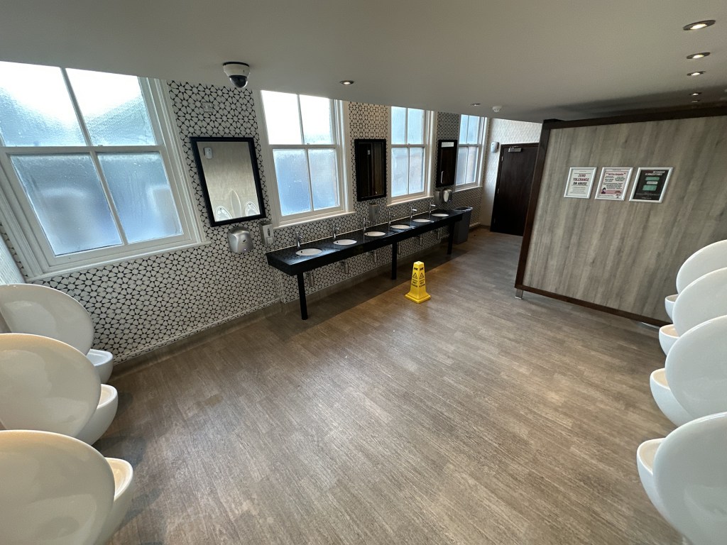The toilets are large and elegantly decorated, with plenty of natural light provided by the tall sash windows. The low ceiling is a tad strange and takes away from the otherwise quite luxurious toilets, but this is presumably a limitation of the historic building.