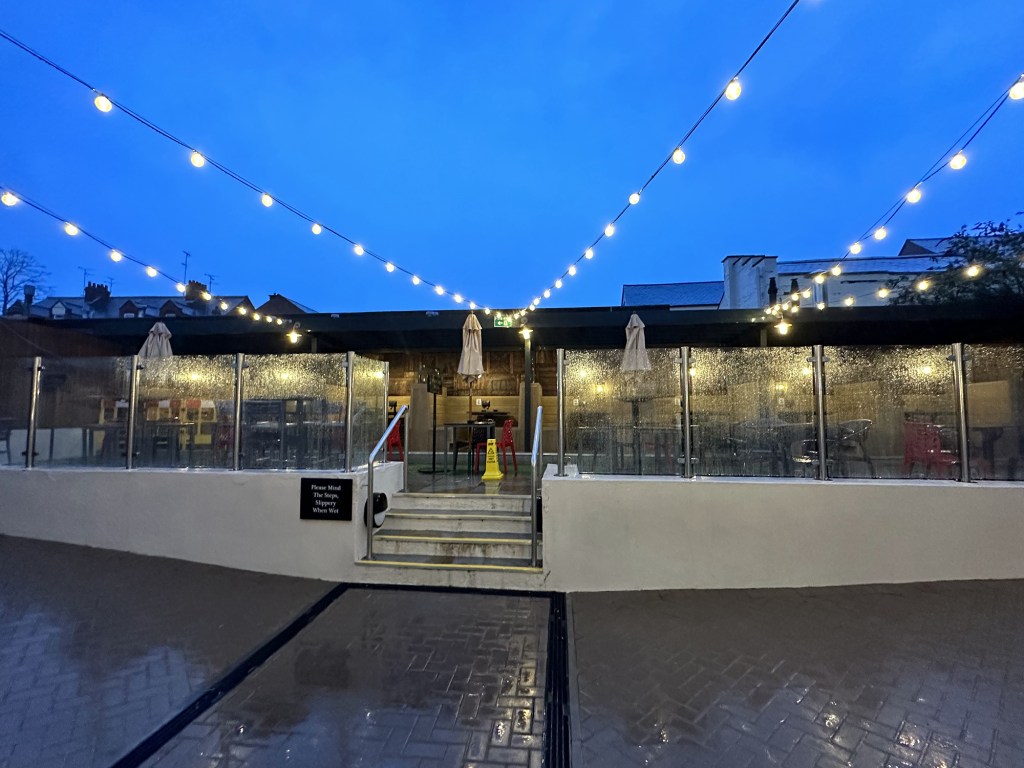 To the rear is a beer garden, enclosed by the old streets of Market Harborough but interestingly detatched from the pub, having to cross a small service road to reach it.