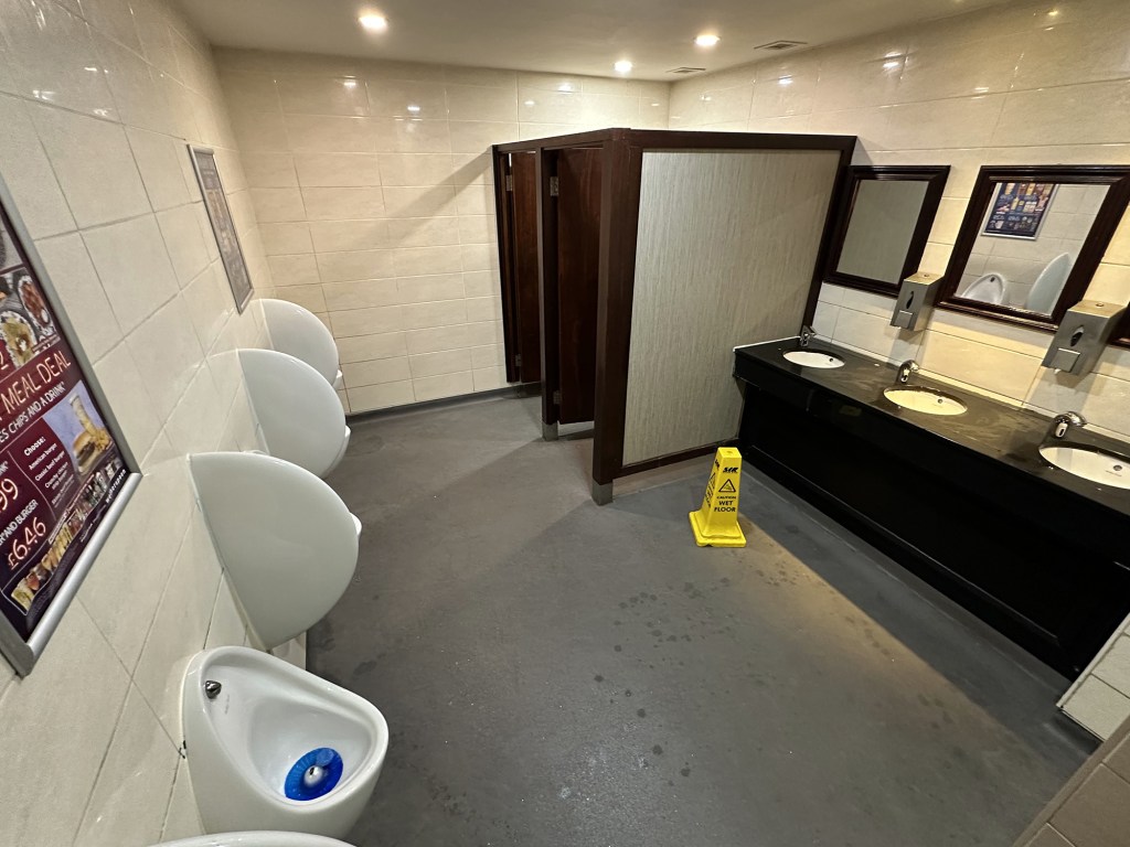 The toilets, located downstairs, were quite small but nothing special, taking the older Spoons design of faux marble worktops and somewhat dated white tiles.
