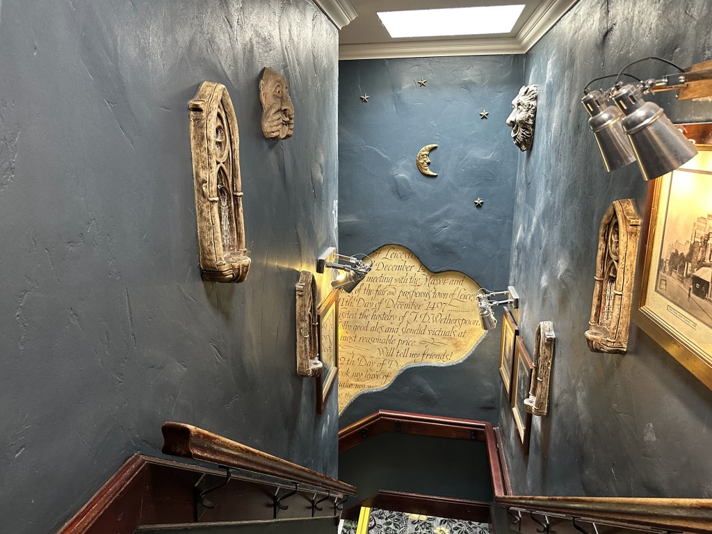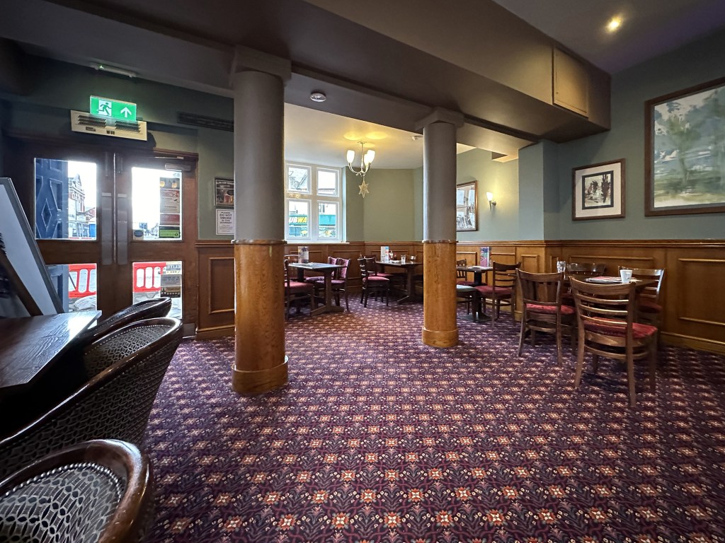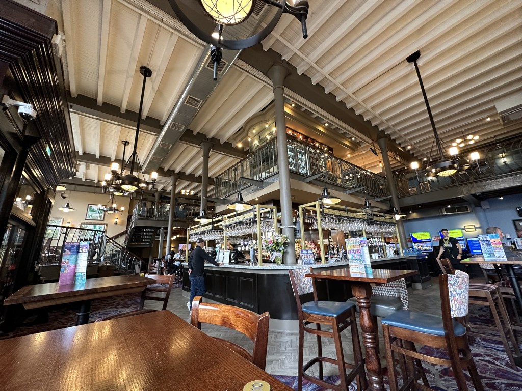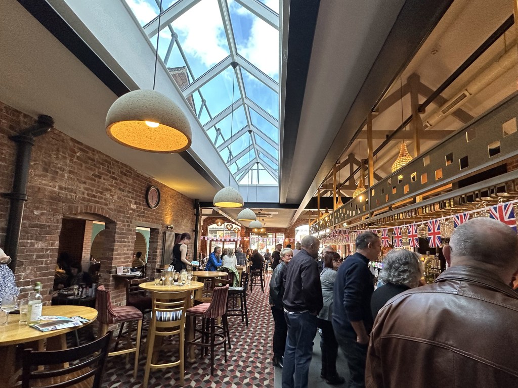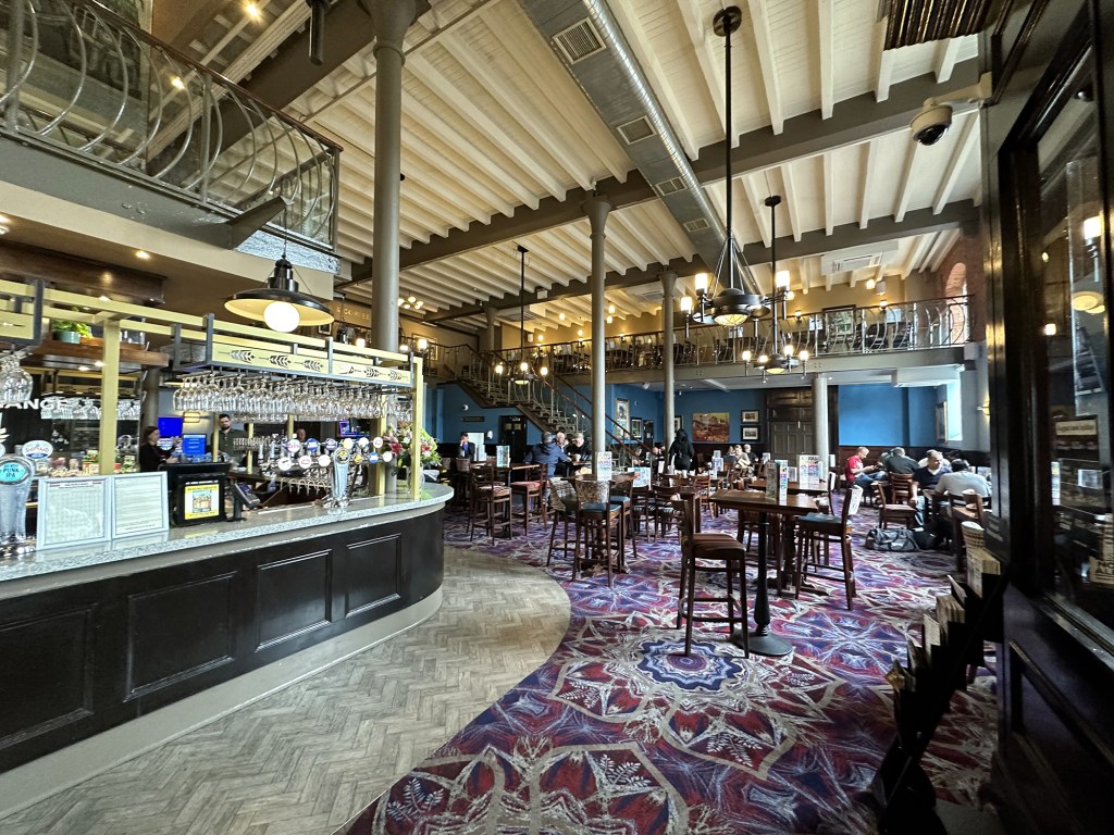 We ticked off our final Leicestershire Wetherspoon quite a while after the first one, finally making a trip to Market Harborough in January 2024. The Sugar Loaf is a wonderful building with quite a history behind it; from the street you see the pub, which was once Thomas Goward’s grocery shop, and above it two floors of accommodation where he and his household lived. Hidden to the rear is a long warehouse where his produce was prepared, converted now to into part of the deep interior of the pub.